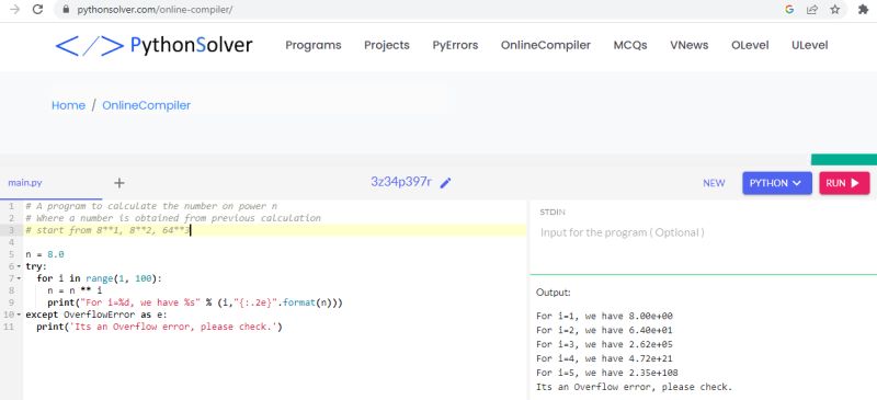- Python OverflowError | Working of Overflow Error in Python with Examples