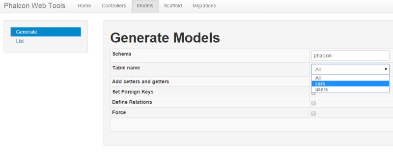 - php - phalcon framework webtools not working when creating models ...