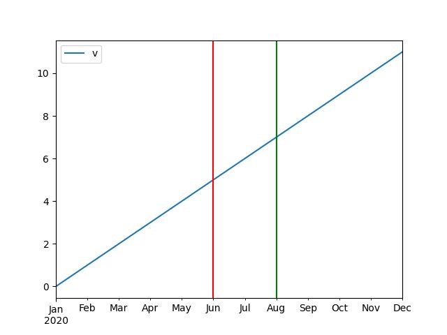 - python - Adding a verticle line using axvline in matplotlib based on ...