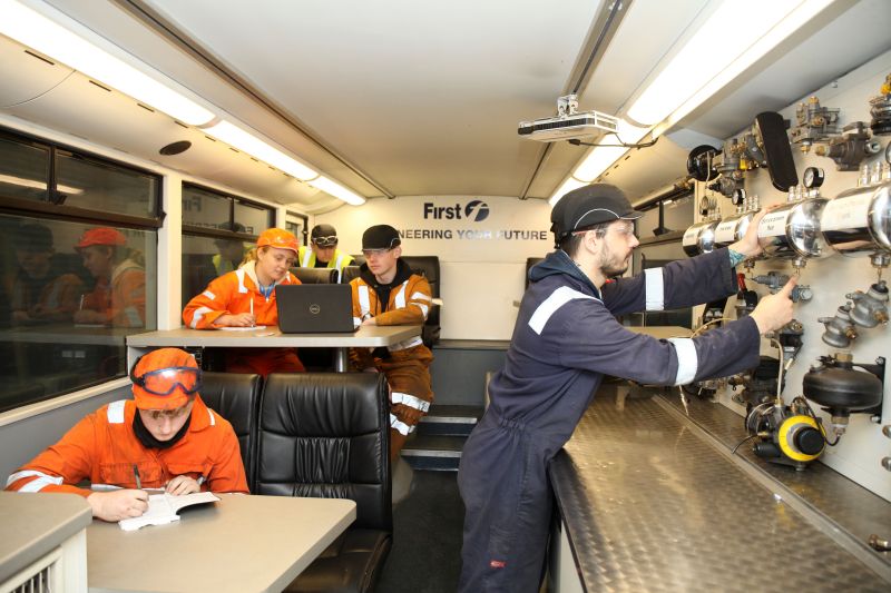 - First Bus apprentices inside training bus - Reaseheath College
